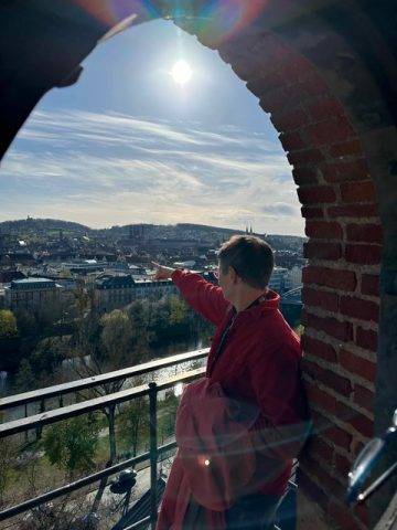 Die Unternehmung begann deshalb mit einer eindrucksvollen Führung auf den Turm der Erlöserkirche